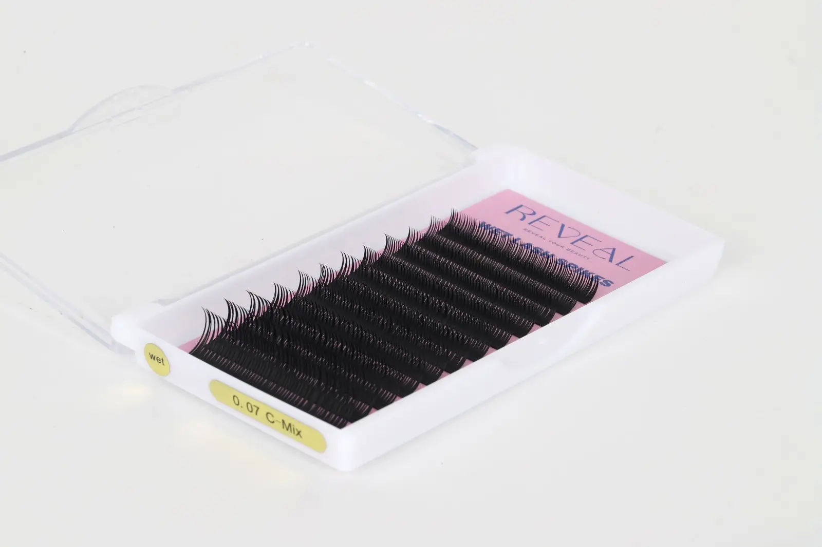 Οι συγκεκριμένες βλεφαρίδες είναι προδιαμορφωμένα “spikes” σχεδιασμένα για να δημιουργούν το πολύ δημοφιλές “wet lash look” — ένα εφέ που θυμίζει κλασικές βλεφαρίδες με μάσκαρα ή υγρές, φρέσκες από το νερό. Το αποτέλεσμα είναι κομψό, διαχωρισμένο και γυαλιστερό, προσδίδοντας έντονη, εντυπωσιακή εμφάνιση. Είναι ιδανικές για δημιουργία υφής και έντονου ορισμού σε hybrid ή volume σετ.